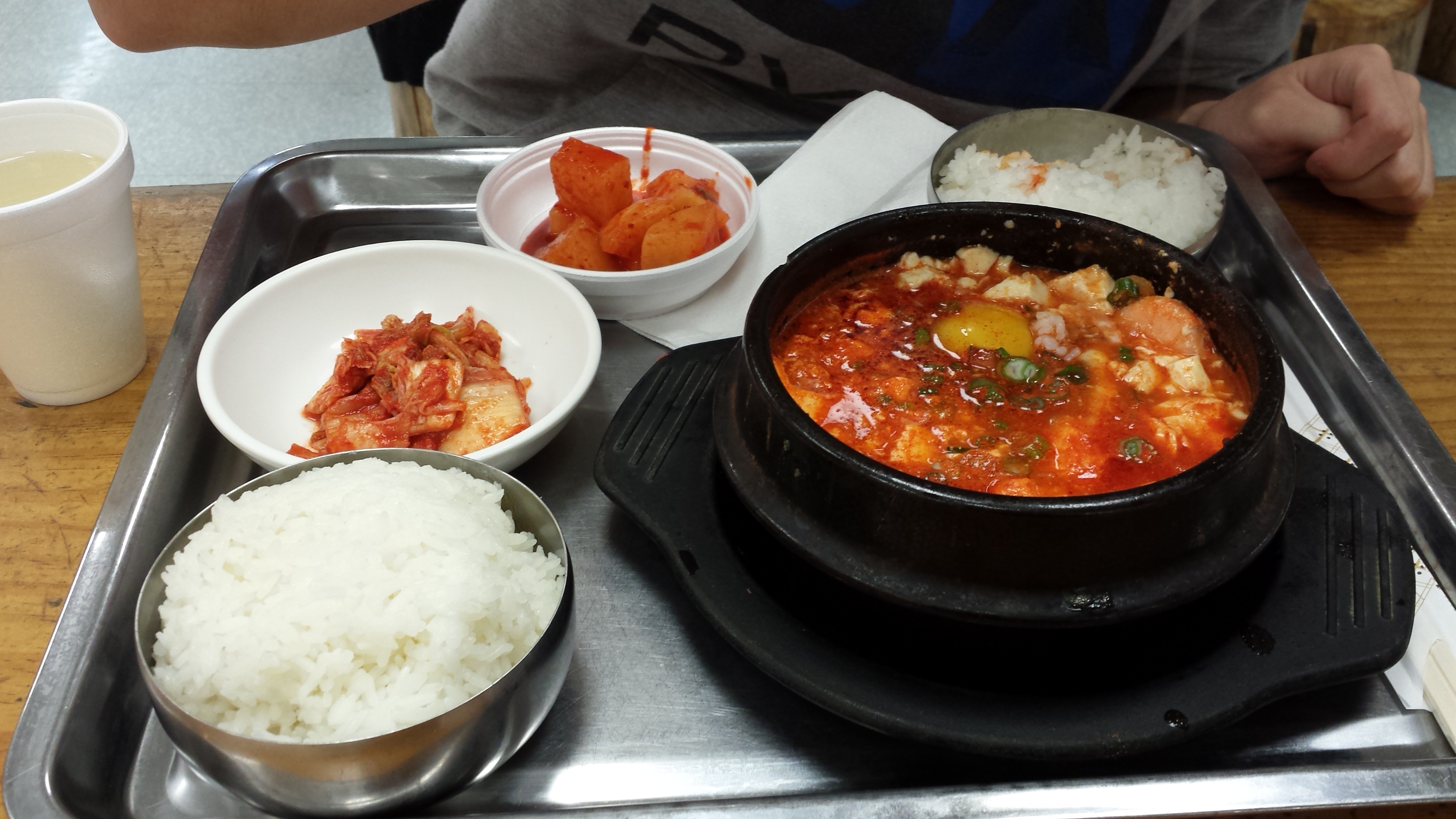 I had my very first taste of soondubu jjigae (순두부 찌개), otherwise known as Korean soft tofu stew and a variety of other romanizations (soondooboo, sundubu, soondoobu, etc.) just a few weeks ago. The weather on the Eastern seaboard had gotten quite noticeably colder and I decided to try it. This bubbling pot of spicy tofu stew with an egg and seafood sounded really promising.